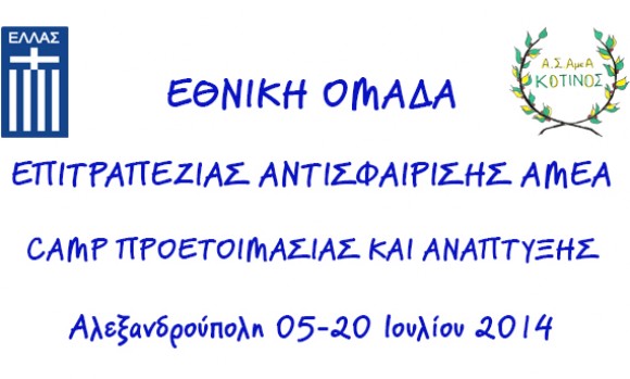 Ο Α.Σ. ΑμεΑ «ΚΟΤΙΝΟΣ» καλωσορίζει στην Αλεξανδρούπολη την Εθνική ομάδα Επιτραπέζιας Αντισφαίρισης της Ε.Α.ΟΜ. ΑμεΑ, που θα βρίσκεται στην πόλη μας το διάστημα από 05 έως 20 Ιουλίου 2014, όπου για δεκαπέντε μέρες, θα πραγματοποιήσει την προετοιμασία της, ενόψει των προσεχών αγωνιστικών της υποχρεώσεων.