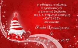 οι αθλήτριες, οι αθλητές, οι προπονητές και το Διοικητικό Συμβούλιο του Α. Σ. Ατόμων με Αναπηρίες «ΚΟΤΙΝΟΣ» σας εύχονται Καλά Χριστούγεννα & Ευτυχισμένο το 2018