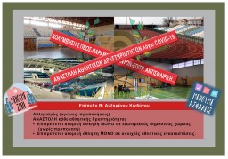 Επίπεδο Β: Αυξημένου Κινδύνου Αθλητισμός (αγώνες, προπονήσεις) ΑΝΑΣΤΟΛΗ κάθε αθλητικής δραστηριότητας Επιτρέπεται ατομική άσκηση ΜΟΝΟ σε εξωτερικούς δημόσιους χώρους (χωρίς προπονητή).