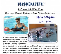 Η Υδροθεραπεία είναι η εφαρμογή μεθόδων κινησιοθεραπείας στο νερό τόσο σε ατομικό επίπεδο, όσο και σε μικρότερες ομάδες ομοιοπαθούντων. Αποτελεί την ανατρεπτική και εναλλακτική μορφή αποκατάστασης και άσκησης πληθυσμών όλων των ηλικιών από 6 μηνών ως 80 ετών. Είναι η λύση εκεί που η αποκατάσταση και η άσκηση στη ξηρά είναι απαγορευτική για πολλές χρόνιες [...]